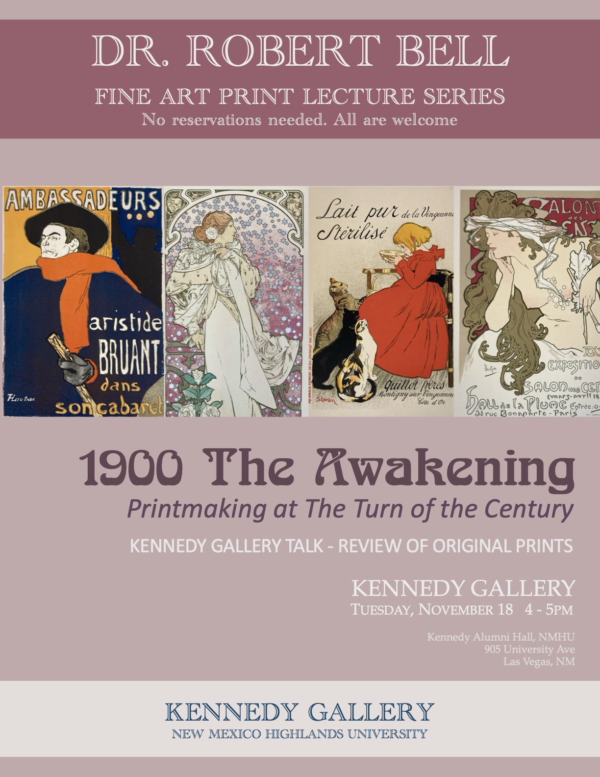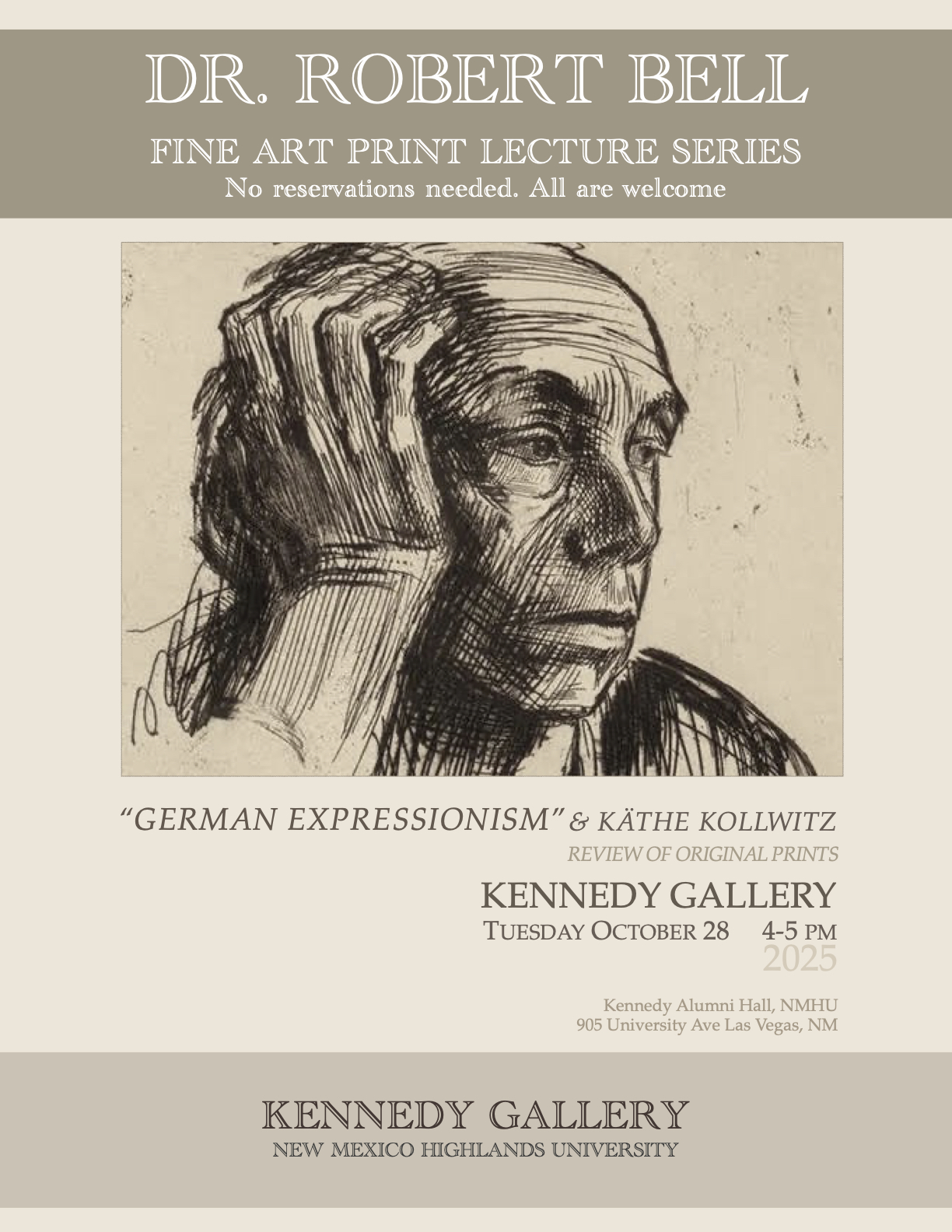 These lectures will be held in the Sheryl and George Talbot Fine Art Print Room in Kennedy Hall, New Mexico Highlands University at 4:00pm.